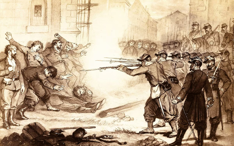 Apenas unos días después de que la Comuna tomara el poder, el 2 de abril, el gobierno central empezó a intentar recuperar la autoridad en París. Empezaron los bombardeos, que los comuneros resistían. Esos ataques no cesaron nunca, y se sumaron otros aún más agresivos. Hacia fines de mayo, la escalada de violencia sería imparable. Era el principio del fin de la Comuna de París, de la mano de la “semaine sanglante” (“semana sangrienta”).