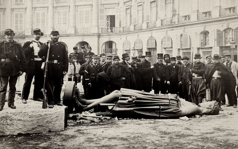Los comuneros habían demolido también la columna de la Plaza Vendôme, coronada por una estatua de Napoleón. Ni la monarquía, ni el imperio, ni la república conservadora se salvaban del fuego y la destrucción. En total, según denunció el gobierno de Thiers tras recuperar la ciudad, unos 200 edificios públicos fueron destruidos en los incendios, que ocurrieron geográficamente en el mismo orden en el que el Estado nacional llevaba adelante su reconquista.