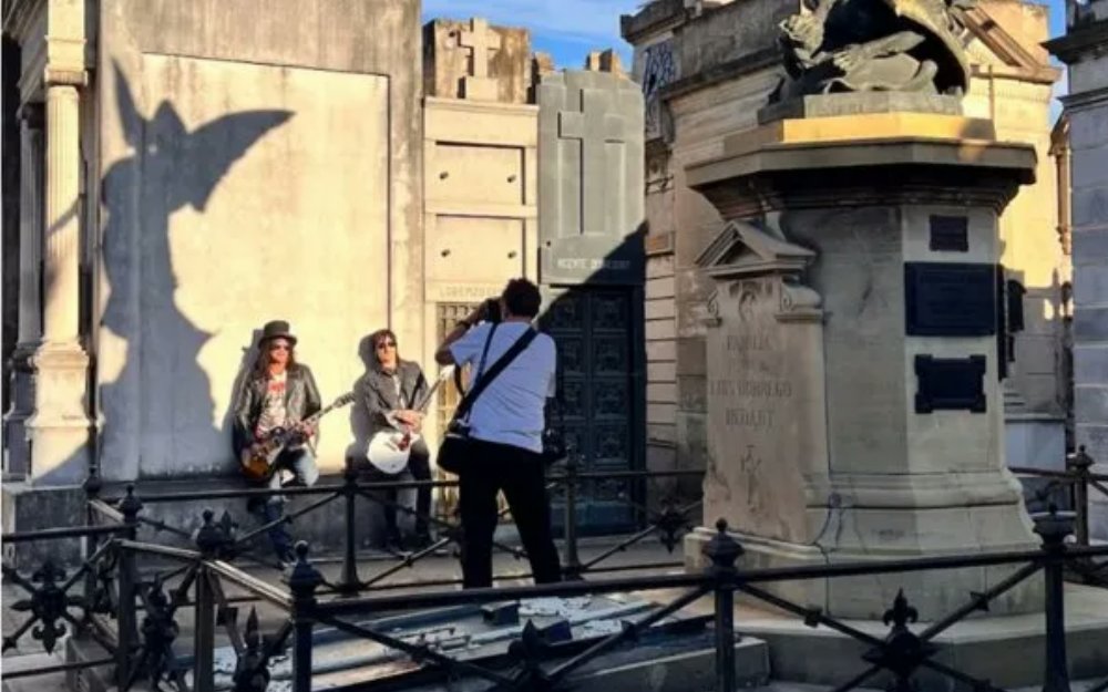 En el marco de su gira por la Argentina, Slash y Richard Fortus posaron con sus guitarras en el emblemático espacio porteño.