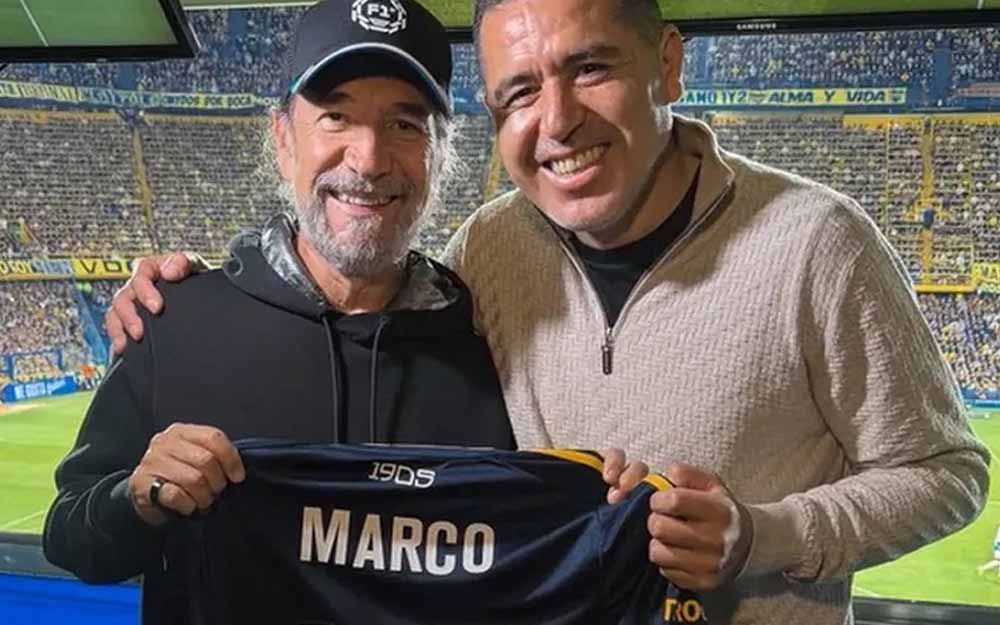 En esta oportunidad, se hizo presente, Marco Antonio Solís, el ex Buki, reconocido cantante mexicano fue recibido por el presidente de Boca, quien le regaló una camiseta con su nombre. "Usted es el ídolo de mi mamá", le dijo Riquelme.-  eldiariodecatamarca.com