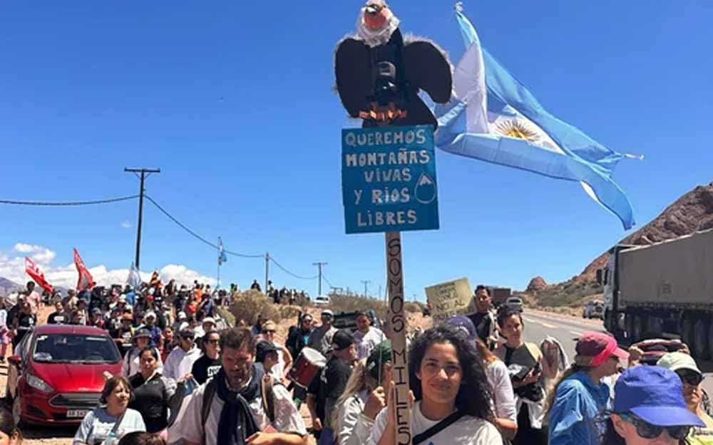 El objetivo de la movilización es presionar al Senado provincial para que rechace la Declaración de Impacto Ambiental (DIA) del proyecto de cobre y oro, que este lunes que acompañado por el presidente Javier Milei.