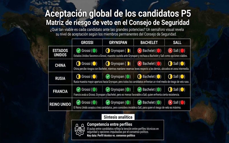 En la práctica, cualquier candidato vetado por alguno de estos cinco países queda fuera de carrera, y solo aquellos con el visto bueno del Consejo llegan a la votación final de la Asamblea.