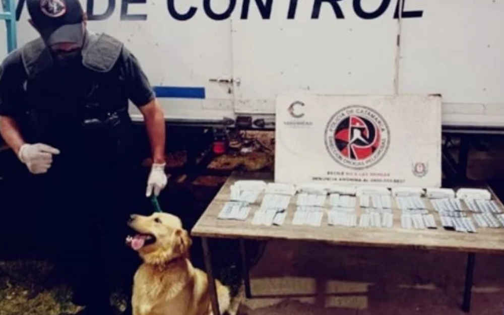 Durante la tarde de este lunes, efectivos de la División Canes Antinarcóticos, dependientes de la Dirección Drogas Peligrosas de la Policía de la Provincia, realizaban un control vehicular e identificación de personas en el puesto caminero "La Viña", ubicado sobre la Ruta Nacional N° 38, en la localidad de Paclín, Departamento Paclín.