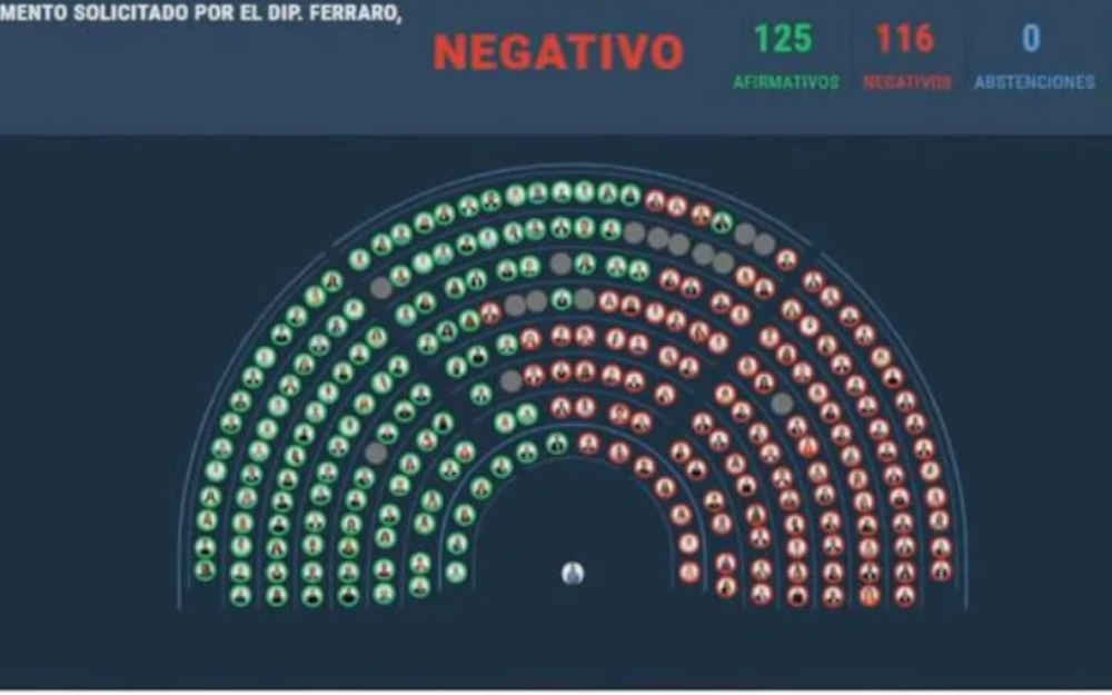 La votación arrojó 125 votos positivos y 116 negativos, pero como los expedientes no tenían dictamen se hubiera requerido una mayoría agravada de las tres cuartas partes de los diputados presentes