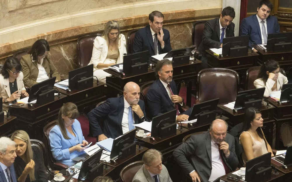 Karina Milei, Diego Santilli, Martín Menem y Lule Menem presenciaron el desenlace de la votación desde una platea del recinto.
