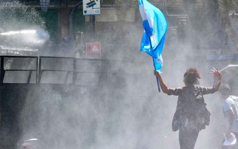 Momentos de tensión se registraban este viernes entre la Policía Federal y los manifestantes en las inmediaciones del Congreso, donde los senadores debatían la nueva Ley Penal Juvenil y la reforma laboral.